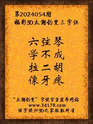 今日3d太湖字谜总汇_2024054期解太湖字谜