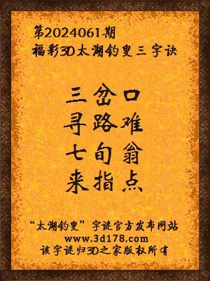 福彩第2024061期3d太湖字谜:三岔口,寻路难,七旬翁,来指点