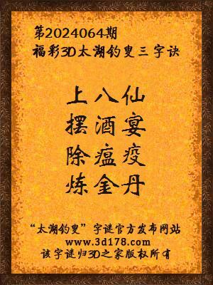 3d第2024064期湘西老怪解太湖钓叟三字诀:上八仙