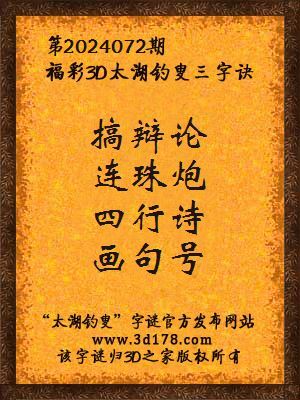 福彩第2024072期3d太湖字谜:搞辩论,连珠炮,四行诗,画句号