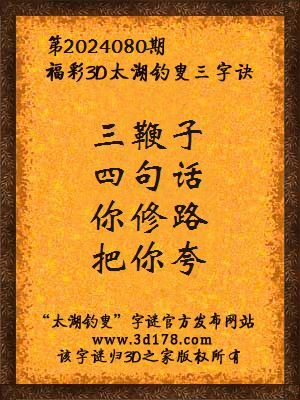福彩第2024080期3d太湖字谜:三鞭子,四句话,你修路,把你夸