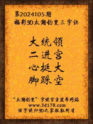 3d马前屁解太湖字谜第2024105期:大统领,二进宫