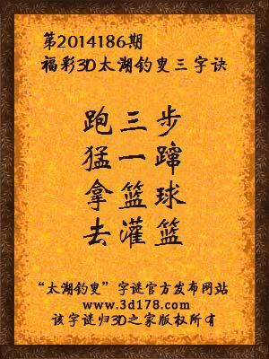 2014年福彩3d第186期太湖钓叟字谜:跑三步,猛一蹿,拿篮球,去灌篮