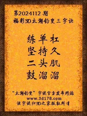 福彩第2024112期3d太湖字谜:练单杠,坚持久,二头肌,鼓溜溜