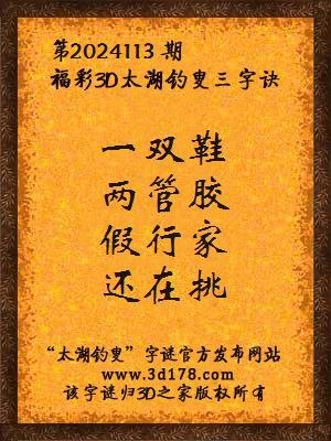 下面开始解3d第2024113期太湖字谜: