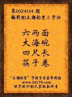 下面开始解3d第2024114期太湖字谜: