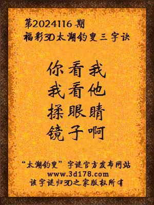 下面开始解3d第2024116期太湖字谜: