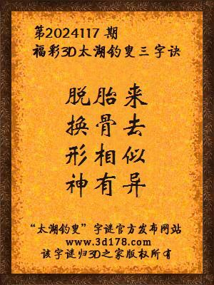 3d第2024117期太湖字谜杰夫哈迪解析:脱胎换骨