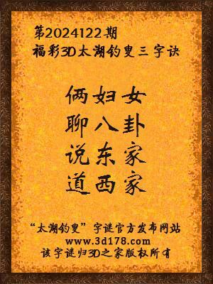 今日3d太湖字谜总汇_2024122期解太湖字谜