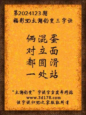 福彩第2024123期3d太湖字谜:俩混蛋,对立面,都圆滑,一处站
