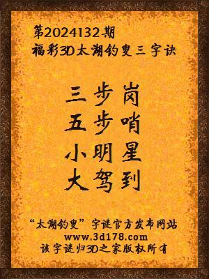 3d专家青山道长解太湖第2024132期字谜玄机:三步岗