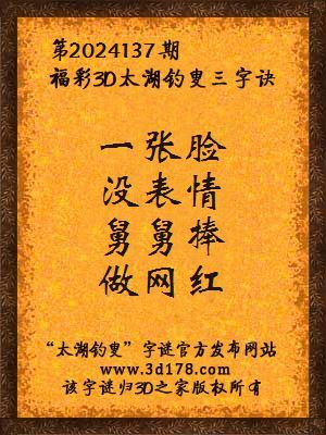 福彩第2024137期3d太湖字谜:一张脸,没表情,舅舅捧,做网红