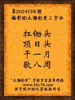 今日3d太湖字谜总汇_2024138期解太湖字谜