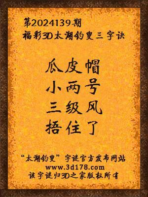 第2024139期3d太湖字谜曹州客解分析预测:影响力弱