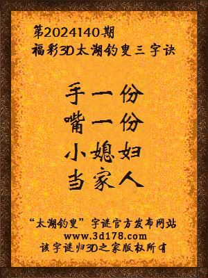福彩第2024140期3d太湖字谜:手一份,嘴一份,小媳妇,当家人