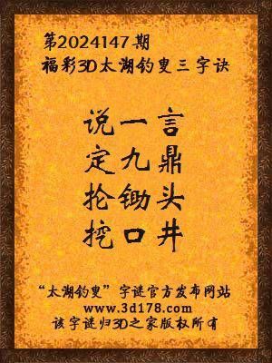 今日3d太湖字谜总汇_2024147期解太湖字谜