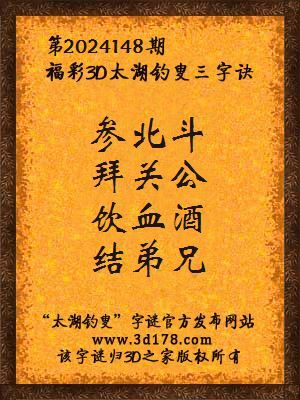 福彩第2024148期3d太湖字谜:参北斗,拜关公,饮血酒,结弟兄