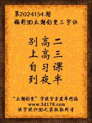 3d专家曹州客第2024154期太湖字谜解析:准备高考