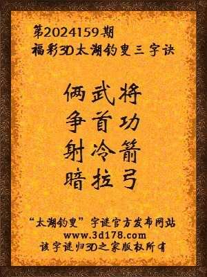 福彩第2024159期3d太湖字谜:俩武将,争首功,射冷箭,暗拉弓