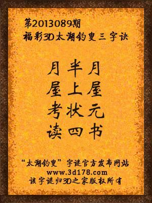 福彩3D第13089期太湖字谜:月半月,屋上屋,考状元,读四书