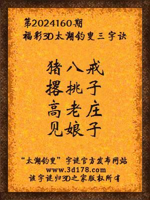解3d第2024160期太湖钓叟字谜只求奉献独家思路
