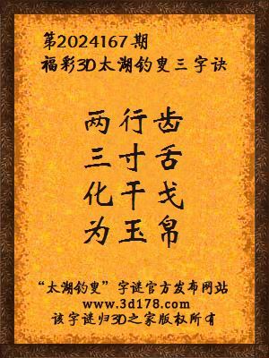 第2024167期专家真实谎言解3d太湖字谜:两行齿