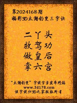 今日3d太湖字谜总汇_2024168期解太湖字谜
