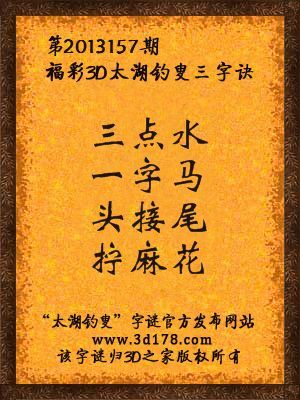 福彩3D第13157期太湖字谜:三点水,一字马,头接尾,拧麻花