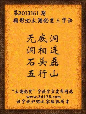 福彩3D第13161期太湖字谜:无底洞,洞相连,石头磊,五行山