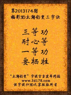 福彩3D第13174期太湖字谜:三等功,耐心等,一等功,要牺牲