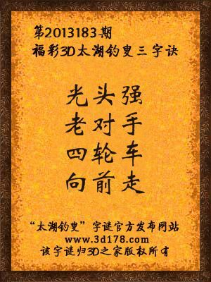 福彩3D第13183期太湖字谜:光头强,老对手,四轮车,向前走