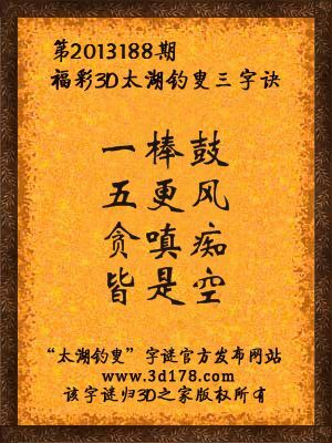 福彩3D第13188期太湖字谜:一棒鼓,五更风,贪嗔痴,皆是空