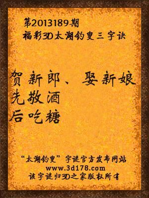 福彩3D第13189期太湖字谜:贺新郎、娶新娘,先敬酒,后吃糖