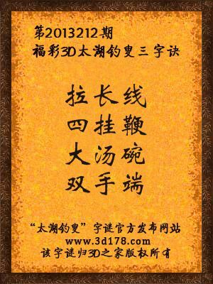 福彩3D第13212期太湖字谜:拉长线,四挂鞭,大汤碗,双手端