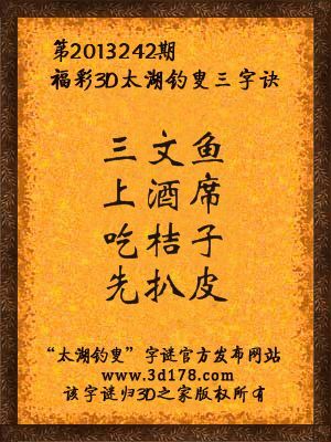 解福彩3d第2013242期太湖字谜