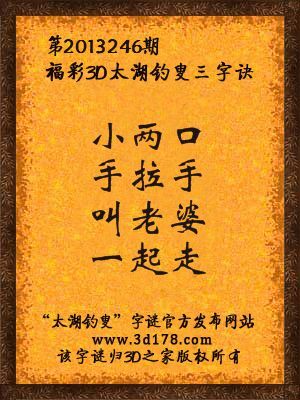 福彩3D第13246期太湖字谜:小两口,手拉手,叫老婆,一起走