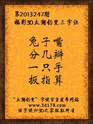 解福彩3d第2013247期太湖字谜