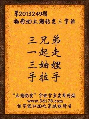 福彩3D第13249期太湖字谜:三兄弟,一起走,三妯娌,手拉手