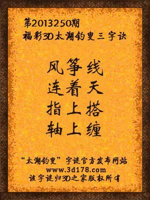 福彩3D第13250期太湖字谜:风筝线,连着天,指上搭,轴上缠