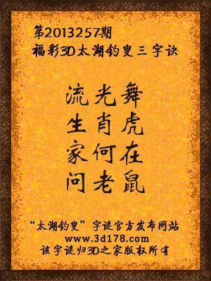 福彩3D第13257期太湖字谜:流光舞,生肖虎,家何在,问老鼠