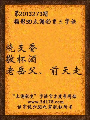 福彩3D第13273期太湖字谜:烧支香,敬杯酒,老岳父、前天走