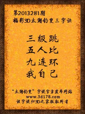 福彩3D第13281期太湖字谜:三级跳,五人比,九连环,我自己