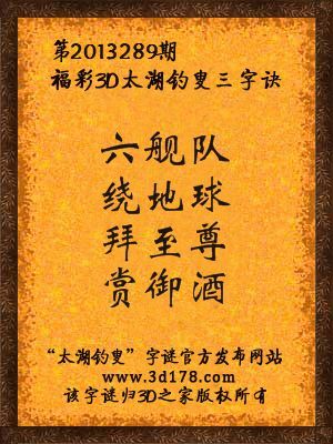 福彩3D第13289期太湖字谜:六舰队,绕地球,拜至尊,赏御酒