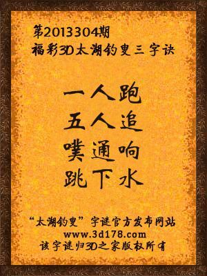 福彩3D第13304期太湖字谜:一人跑,五人追,噗通响,跳下水