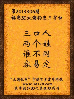 福彩3D第13306期太湖字谜:三口人,两个姓,谁不同?容易定