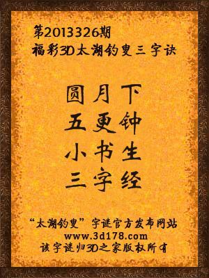 福彩3D第13326期太湖字谜:圆月下,五更钟,小书生,三字经