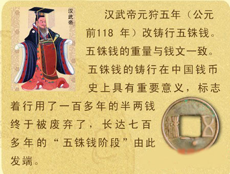 五铢钱,滴溜圆:五铢钱是古代人们用的一种货币,在老百姓中间流通的钱币,这种钱币外观是圆形的一个铜板,里面有一个正方形的孔,然后在钱币上刻上五铢这两个字,铢是一种重量单位,说明了这个五铢钱是很轻的;