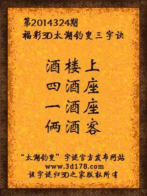 2014年福彩3d第324太湖钓叟字谜:酒楼上,四酒座,一酒座,倆酒客