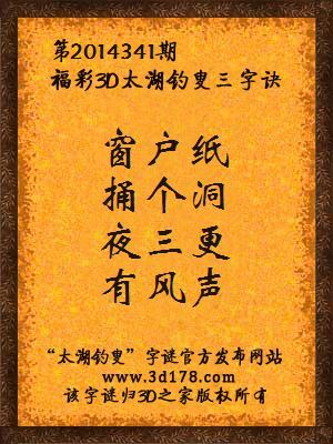 2014年福彩3d第341太湖钓叟字谜:窗户纸,捅个洞,夜三更,有风声