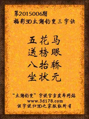 2015年福彩3d第006太湖钓叟字谜:五花马,送榜眼,八抬轿,坐状元